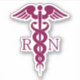 A vinyl decal with a stylish red caduceus symbol with the letters R N on either side. Perfect for registered nurses.