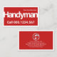Cover features a red layer that is encapsulated by a white frame. It displays a "handyman" signage across its face. At the top corner is your prestigious name with the contact details at the base.