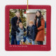 Simple red frame one photo Christmas Ceramic Ornament