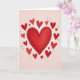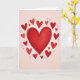 This greeting card shows a large red heart in the middle, with a slightly textured, crayon-like look that makes it feel warm and real. Around it, smaller hearts float in different sizes, each with uneven, hand-drawn outlines that look like they were sketched quickly with care. The background is a soft blush pink that fades gently, so the reds stand out without feeling harsh. Some of the little hearts are more like quick doodles, which adds a sweet, honest feeling, like a note you’d draw for someone you love. The reds shift from deep ruby to brighter scarlet, giving the heart shapes depth and keeping the design interesting. There isn’t any text on the front, so the artwork does all the talking and leaves room for your own words inside. It feels meaningful to give because it looks simple and sincere, like a straightforward “I care about you” 🥰❤️. Hope it helps you share your Valentine’s Day sentiments.