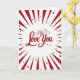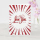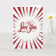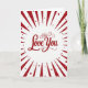 This card shows the words “Love You” in flowing red lettering right in the center. Around the message, deep red lines spread outward like a sunburst, all set against a white background. The lines point back toward the middle, making your eyes land on the words right away. Small dots in red and white are sprinkled around the rays, like little bits of confetti floating in the air. The simple red-and-white look feels warm and romantic without needing any extra details ❤️. It’s a meaningful card to give when you want someone to know they’re on your mind and close to your heart 🥰. Share it to pass along your Valentine’s Day feelings in a way that’s easy, honest, and kind.