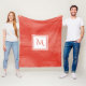 A simple subtle marble fleece blanket in orange-red with a modern white square badge that you can personalize by adding your monogrammed initial to. This is part of the Cherry Tomato Red Subtle Marble Monogram Collection.