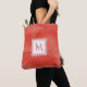 Simple Red Orange Subtle Marble Modern Monogram Tote Bag