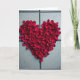 This greeting card shows a heart shape made from scattered deep red rose petals, seen from straight above. The petals look soft and slightly uneven, with a few edges curling, which makes it feel like someone placed them there with care. The heart sits on four cool gray concrete tiles that have tiny speckles and clear lines between them. Gentle lighting brings out the rich red color against the muted stone background, so the heart stands out right away. There isn’t any text on the front, so the image does all the talking and leaves room for your own words inside. It feels meaningful because it pairs something tender with something steady, like love that lasts through ordinary days. Giving this card can say “I’m thinking of you” in a simple, honest way 🥰❤️.