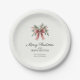 Simple Red Ribbon Bow Watercolor Holly Christmas Paper Plates