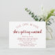 Yes, you can print on the back of your invitation for free! Most designs already have a corresponding design on the back that can be personalized using the Design Tool and going to Layers. This is a great way to communicate more information or further personalize your Simple Red Script One Where Shes Getting Married Invitation. The option is really up to you.