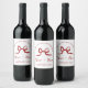 Simple Red & White Hand Drawn Bow Sketch Wedding Wine Label