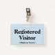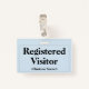This simple badge design features the message "Registered Visitor", and a customizable company name or other custom message. It also features a single-line border with rounded corners. A badge like this could be used to identify that somebody at a workplace or business is an authorized guest/visitor. [~Z0000307]