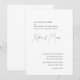 Plain white envelopes are included with paper invitations and will come to fit the invitation size you select. If you don’t need the envelopes, you may choose to not receive them by selecting the dropdown below "Envelopes" and choosing "None." If you’d like to have a design on your envelopes, you can browse all of these available envelopes to find the design that complements your Simple Rehearsal Dinner Invitation.