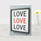 This card shows a black-framed print hanging at a slight angle on a cool, pale wall. In the center, the word “LOVE” appears three times in a simple sans-serif letter style. The top and bottom “LOVE” are in black, while the middle “LOVE” is bright red, making it the first thing your eyes land on. The background of the print is white, and the lighting is soft, giving the whole scene a gentle, calm feel. The image is slightly out of focus, which makes it feel more like a quiet moment than a sharp photo. Giving this card can feel meaningful because it says “LOVE” plainly, but the red word in the middle adds a little heartbeat of feeling ❤️. It works for romance or close friendship, especially when you want to say a lot without many words 🥰. Hope it helps you share your Valentine’s Day feelings with someone you care about.