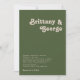 Yes, you can print on the back of your invitation for free! Most designs already have a corresponding design on the back that can be personalized using the Design Tool and going to Layers. This is a great way to communicate more information or further personalize your Simple Retro Vibes Olive Green Wedding Invitation. The option is really up to you.