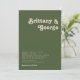 Having your Simple Retro Vibes Olive Green Wedding Invitation match the theme of your party is a great detail that your guests will appreciate. The thoughtfulness of a consistent party theme is often appreciated and can show your guests that you can host a cohesive event.
