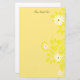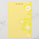 The stationery design features a border of retro white daisies over a pastel yellow background. Personalize in the template field with your desired text, remove the text or edit using the design tool to select a font in the style, color, and size you like.