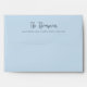 This design features a return address, a simple, minimalist envelope, a 5x7 size, a pastel, blue with watercolor yellow inside, a basic, script typography style with a light blue, minimal style.