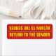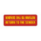 This basic label design features the message "RETURN TO THE SENDER". It could be used to indicate that received letter mail may have been wrongly addressed, and should be returned to the sender. [~Z0000168]