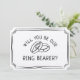 Ask your little helper the big question with this timeless "Will You Be Our Ring Bearer?" card. Featuring elegant black-and-white rings and a simple design, this card is perfect for creating a memorable moment as you plan your wedding day.