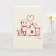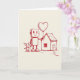 This greeting card shows a simple red drawing on a soft, creamy background, like a cozy sketch from a storybook. A friendly robot with a square head stands smiling gently, and a smaller companion with pointed ears looks up at it with trust. Next to them is a little house with a peaked roof, a door, and a single window, giving the scene a homey feel. The robot holds a string attached to a heart-shaped balloon floating above, making the love in the picture easy to spot ❤️. The lines look loosely drawn with light shading, which adds a quiet, comforting texture without a lot of extra detail. There isn’t any visible text on the front, so the picture does all the talking and leaves room for your own words inside. It feels meaningful to give because it’s about looking out for someone and building a sense of home together 🥰. Share it to pass along Valentine’s Day feelings in a simple, caring way.