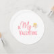 Soft white, finished with decorative pink text accompanied by young cupid. On the back, you can customize with your own personal message. Background color is customizable.