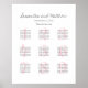 | FEWER TABLES | A simple customizable wedding seating chart with blush table numbers behind the guest names. Fill in the easy-to-use template with your names, date, seating instructions, and guest names by table then click "Customize it!" to change the color and/or fonts of any text. NOTE: When customizing, be aware that table numbers 10, 11, and 12 are separated as 1 and 0, 1 and 1, & 1 and 2 so that they fit more nicely on the board. Congratulations, and I wish you the best in your marriage!