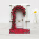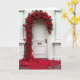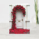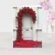 This design shows a white front door with classic panels, framed by an arch of deep red roses and green leaves. A thick cascade of roses spills down the left side, making it feel like someone went out of their way to make the entrance special. The door has a shiny gold handle and a matching mail slot that stand out against the white. On the grey floor, a long red satin ribbon trails from the flowers and curves across the ground. Red rose petals are scattered all around the ribbon, like a path leading up to the door. There isn’t any text on the front, so the flowers and color do all the talking and leave room for your own words inside 🥰. It feels meaningful because it suggests waiting, surprise, and care—like love has been set out for someone to find ❤️.