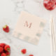 Red monogram Ecru Coined Luncheon Napkin. Wedding. Rose Gold Monogram.