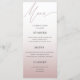 Elegant and modern wedding menu template. Simple, with modern calligraphy on a dusty pink/rose gold gradient. Easy to customize with your own unique menu.