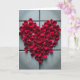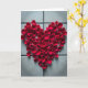 This greeting card shows a large heart shape made from many deep red rose petals spread across light gray square tiles. The petals look soft and velvety, with some curled tight and others opened wider, so the heart feels full and real. Gentle light falls from one side and makes small shadows under the petals, giving the whole scene a calm, intimate feel. The tile background is plain and slightly speckled, with darker lines between each square, which makes the red heart stand out even more. There isn’t any text on the front, so the image does all the talking and leaves room for your own words inside. It feels meaningful because it shows love in an everyday place, like someone took time to make a quiet moment special 🥰. This card works for romance or close friendship, especially when you want to say “I’m thinking of you” without making it complicated ❤️. Share it to help pass along Valentine’s Day feelings in a simple, caring way.
