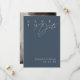 The matter paper is our sample of choice -- it's a reasonably priced, good quality, nice feeling paper stock. We were a little concerned the muted rustic blues might not reproduce all that well (usually by light colored samples), but they're just gorgeous! The white lettering is perfect in combination with the blue background, and the typography is all easy to read.