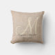 Simple Rustic Beige Burlap Monogrammed Throw Pillow