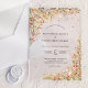 This Simple Rustic Fall Wedding Acrylic Invitations design features a timeless neutral base palette of beige and gold on clear acrylic backgrounds with delicately muted colorful embellishments of golden branches and lovely autumn florals with softly falling leaves in red, copper, dusty rose, burnt orange, terracotta, and the full fall color flourish. These botanical elements are paired with simple traditional minimal black typography to create a presentation that is polished with a delightful touch of whimsy. This design suite offers a range of formal to casual, minimalist to maximalist, in beautiful mix-and-match options for easily curating your perfect wedding suite or event decor in the stunning regalia of fall. As with all of our designs, if you have any questions or special requests, please reach out to us; we would love to help bring your vision to life.