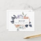 This simple rustic floral song request RSVP postcard is perfect for your elegant vintage spring wedding. It is designed with classic rose flowers, simplistic blush peonies, and dusty purple hydrangeas. All of which is accompanied by touches of green eucalyptus and navy leaves. With all of these light colorful watercolor flowers, you are sure to get the feel you desire.