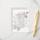 This simple rustic floral wedding schedule of events enclosure card is perfect for your elegant vintage spring wedding. It is designed with classic rose flowers, simplistic blush peonies, and dusty purple hydrangeas. All of which is accompanied by touches of green eucalyptus and navy leaves. With all of these light colorful watercolor flowers, you are sure to get the feel you desire.
