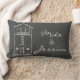 Tiny House Chalkboard Drawing Gray and White Personalized Rectangular Lumbar Pillow. Personalize it with your names or customized text. This image is from my original ink on mylar hand drawing of a small rustic cottage with charming architectural details and small stone benches each side of door. I modified the image digitally to look like a white chalk drawing on a dark gray chalkboard.
