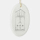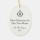 New Home Ink Drawing Black and White New Home First Christmas Double-Sided Oval Ceramic Ornament. Keep drawing of house on front or upload your own image. All text on back can be customized. This image is from my original ink on mylar hand drawing of a small rustic cottage with charming architectural details and small stone benches each side of door.