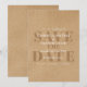 This chic Save the Date card features classical typography on a rustic kraft background. Personalise it with your names, special date, and celebration event details. Designed by Thisisnotme©