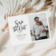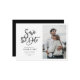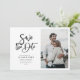simple minimal script photo save the date wedding card. The text and colors can be edited.