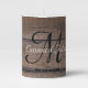 Simple Rustic Wood Monogram Wedding Personalised Pillar Candle