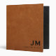 Simple monogrammed binder features a modern design with a bold classic block typography monogram with name below on sable brown leather look textured background.