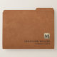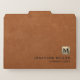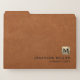 Modern monogram design with stylish brushed metallic gold monogram medallion with personalized name and title below on a sable leather textured background. Personalize for your custom use.