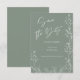 Introducing our minimalist and trendy wedding Save the Date card, featuring a serene saga green color adorned with a simple yet elegant floral design. The delicate white calligraphy adds a touch of sophistication to this Sea of Greens Save the Date card, making it an ideal choice for a modern wedding celebration. The romantic and minimalist design showcases lovely and elegant typography set against a sea green background, creating a clean and stylish look for your special day.
