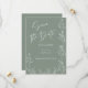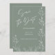 Introducing our minimalist and trendy wedding Save the Date card, featuring a serene saga green color adorned with a simple yet elegant floral design. The delicate white calligraphy adds a touch of sophistication to this Sea of Greens Save the Date card, making it an ideal choice for a modern wedding celebration. The romantic and minimalist design showcases lovely and elegant typography set against a sea green background, creating a clean and stylish look for your special day.