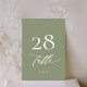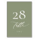 Simple Sage Green and White Modern Calligraphy Table Number