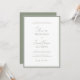Plain white envelopes are included with paper invitations and will come to fit the invitation size you select. If you don’t need the envelopes, you may choose to not receive them by selecting the dropdown below "Envelopes" and choosing "None." If you’d like to have a design on your envelopes, you can browse all of these available envelopes to find the design that complements your Simple Sage Green Border Script Wedding Invitation.