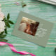 A very elegant simple and chic sage green and white script photo wedding save the date. Which features minimal greenery background and white save the date brushstroke typography. With customizable engagement or just casual groom and bride's photo. Grab this stylish wedding save the date and make your invites truly engaged.