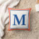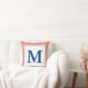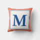 Simple Salmon and Deep Blue Monogrammed Throw Pillow