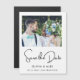 Elegant and stylish white script Save The Date Magnetic Invitation. Perfect for weddings, birthdays, graduations, and other events.