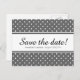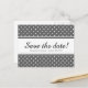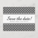 Simple save the date postcards with grey and white polka dots pattern. Modern chic polkadot print design for elegant wedding party. Trendy and fun contemporary style. Custom background color and personalized template text on the back. Change the quantity to get the cheapest price per card.