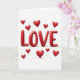 This greeting card shows the word “LOVE” in shiny, candy-apple red letters that look like puffy balloons, set against a bright white background. The letters have soft highlights and gentle shading that make them feel rounded and almost touchable. Around the word, several small red hearts float in the open space, each with a glossy look and a faint shadow underneath. The overall scene is simple and uncluttered, so your eyes go straight to the big red message in the center. The text “LOVE” sits prominently in the middle of the front, using thick, rounded letter shapes in solid red. It feels meaningful to give because it says what you might not always say out loud, in a sweet and straightforward way 🥰. It works for romance or close friendship, and it’s an easy way to remind someone they matter ❤️. Hope it helps you share your Valentine’s Day sentiments.