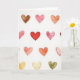 This greeting card shows a group of watercolor hearts arranged in neat rows on a white background. Each heart has soft, slightly uneven edges, like the paint gently spread into the paper. The colors range from deep red and rosy pink to orange, warm brown, pale gold, and muted olive, so every heart feels a little different. There are no characters or objects—just hearts—so the whole focus stays on love and closeness. There isn’t any text on the front, which makes it feel quiet and open, like you can say exactly what you mean inside. It’s meaningful to give because the mix of colors can fit romance, friendship, or family love without forcing one kind of message 🥰. The simple layout also makes it easy for the person receiving it to feel cared for, not overwhelmed ❤️.