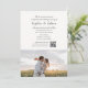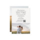 Introducing a uniquely personalized wedding invitation that perfectly marries elegance with cherished memories. The top half of this exquisite invite showcases your wedding details in a stunning combination of elegant script for the introductory and reception information, and timeless serif font for the remaining text, creating an air of sophistication and grace. Below, the invitation becomes truly yours with the addition of your chosen photo, adding a personal touch that will captivate and delight your guests. This invitation is not just an announcement, but a beautiful keepsake, reflecting the special bond you share.